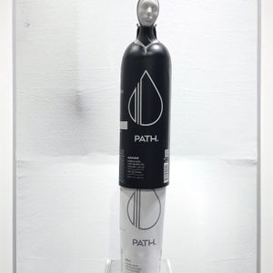Among Galloni’s first "DiPura" works is "Renascita II"—part of a series of the same name—which gives new life to found objects, in this case a found Path bottle.